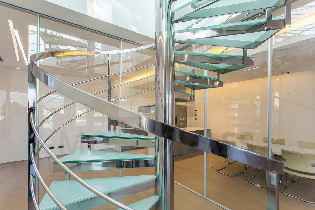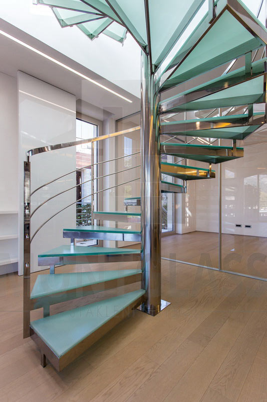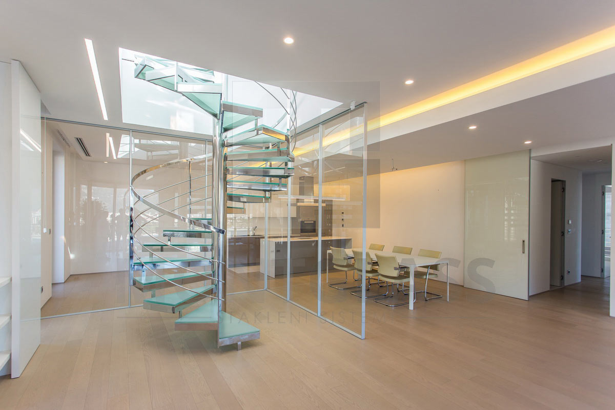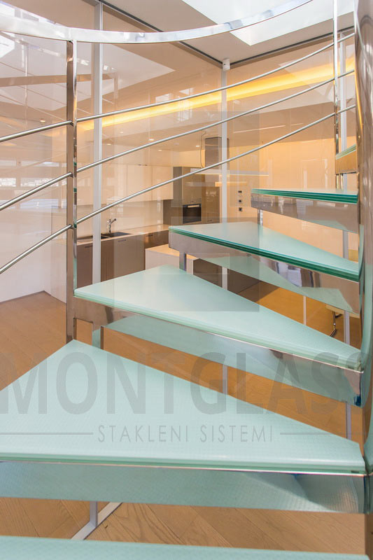 Staklene stepenice se sastoje od staklenih gazišta i podesta koji se postavljaju na konstrukciju od inox-a ili čelika.